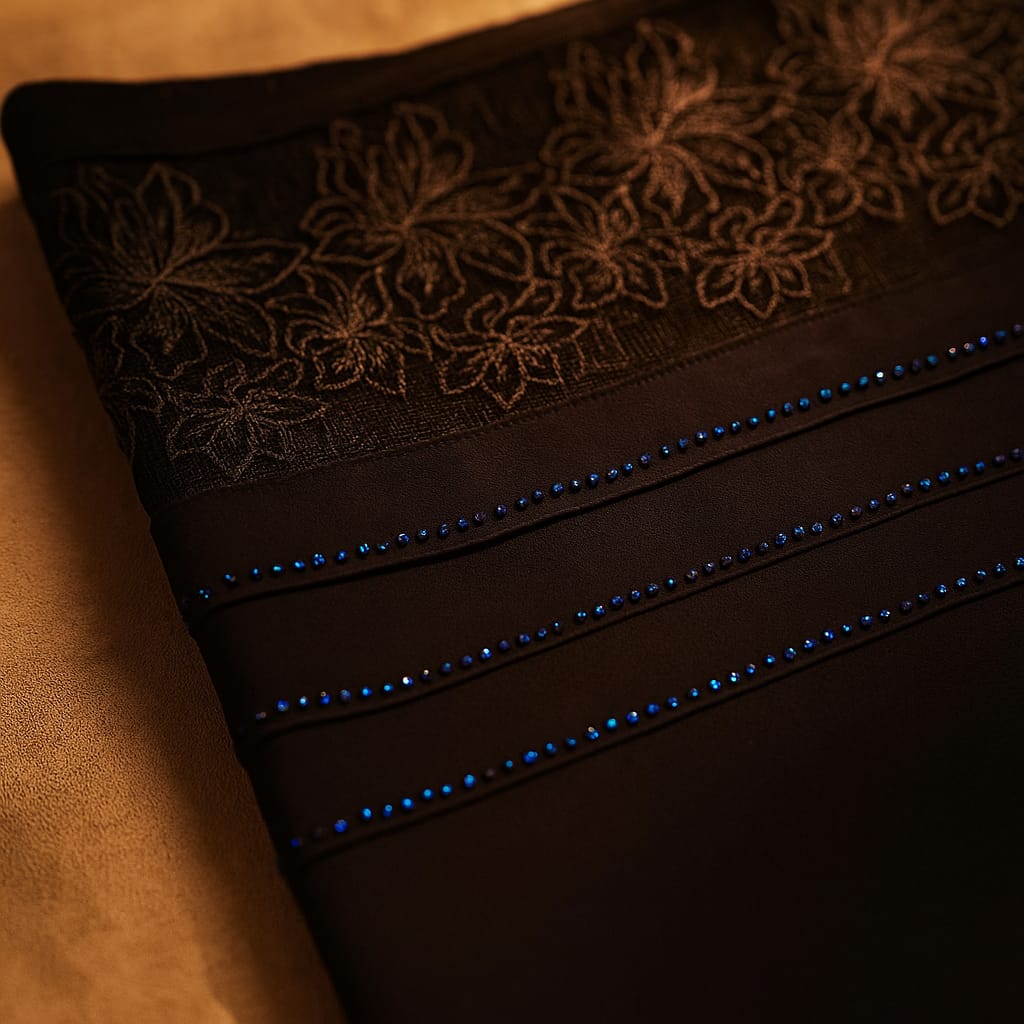 Color: Navy Blue fabric with lace