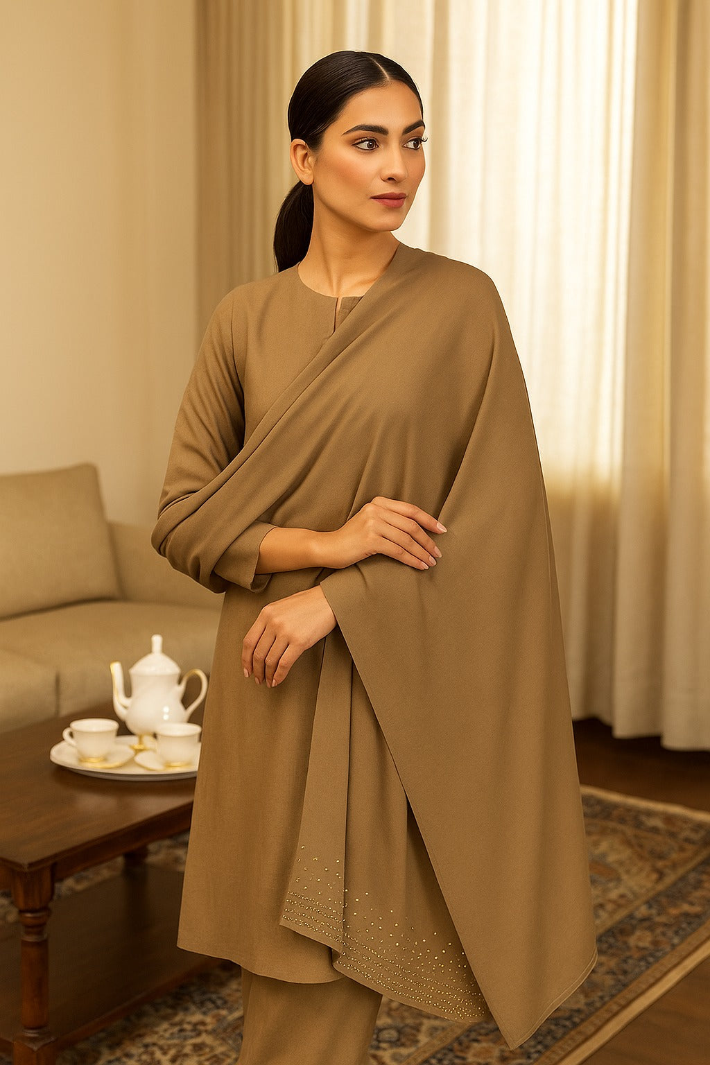Beige Korean Chiffon - Chaddar